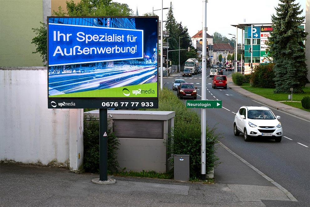 Mit der up2LED-Sujetvorschau können Sie ihre Grafiken virtuell auf der jeweiligen LED platzieren und sich von ihrer Werbewirkung überzeugen.